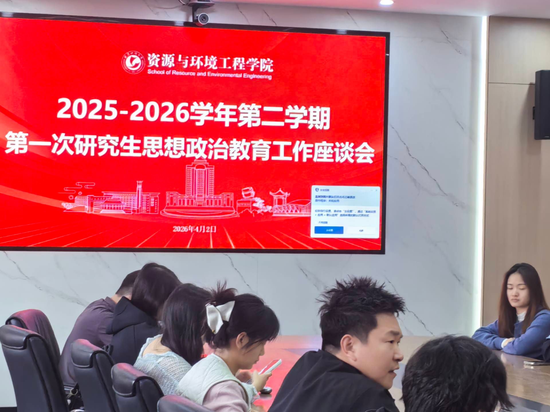 学院网讯(通讯员 施耀斌 杨富德)4月2日下午15:00,学院2025-2026学年第一次研究生思想政治教育工作座谈会在学院5418会议室顺利召开。学院研究生辅导员施耀斌主持会议。本次座谈会紧扣新时代研究生教育发展要求,聚焦研究生成长成才关键环节,精准对接国家政策导向与学院培养目标,确保各项工作落地见效。议题包括研究生意识形态工作、研究生安全稳定工作、2026年研究生国家奖学金评审实施细则修订意见征询、研究生骨干队伍量化考核管理办法修订意见征询、...