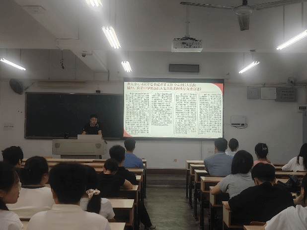 学院网讯(通讯员 唐紫怡 王静怡)9月12日,我院研究生第一党支部于主楼0311举行“弘扬抗战精神,奋进复兴征程”主题党日活动。支部全体党员、预备党员、发展对象及积极分子参加,活动由支部副书记肖金鹏主持。