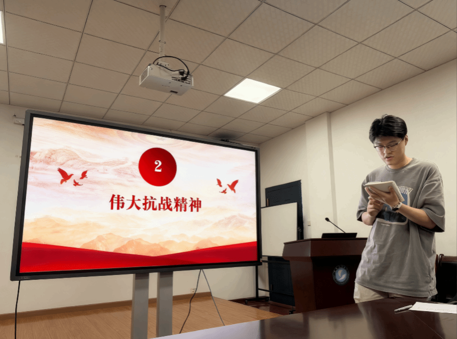 学院网讯(通讯员刘安琪 秦淼)为深入学习贯彻习近平总书记关于中国人民抗日战争和世界反法西斯战争的重要论述,认真领会习近平总书记在纪念中国人民抗日战争暨世界反法西斯战争胜利80周年大会和招待会上的重要讲话精神,2025年9月12日,我院研究生第三党支部在教五楼附楼会议室开展“弘扬伟大抗战精神,向着中华民族伟大复兴的光辉彼岸奋勇前进”主题党日活动。本次活动由党支部书记王正主持,全体党员参加。